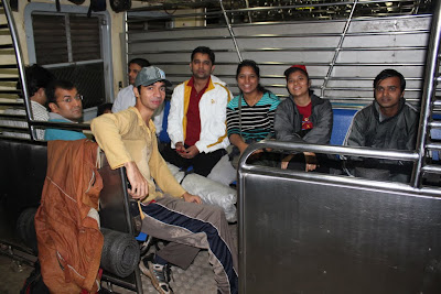 All those who were asleep stoop up at once except for Anand :) he was busy driving his road roller with his nose :P. With all that hush and bush... Nandi picked that crab in his hand and thew it out of the window. O man... from where did he come. He was one of those types we saw while ascending up in the jungles. So our guess is that, he must have entered someone's mat or sack and made his way till here :) After this Khekda episode again everyone fell asleep.
